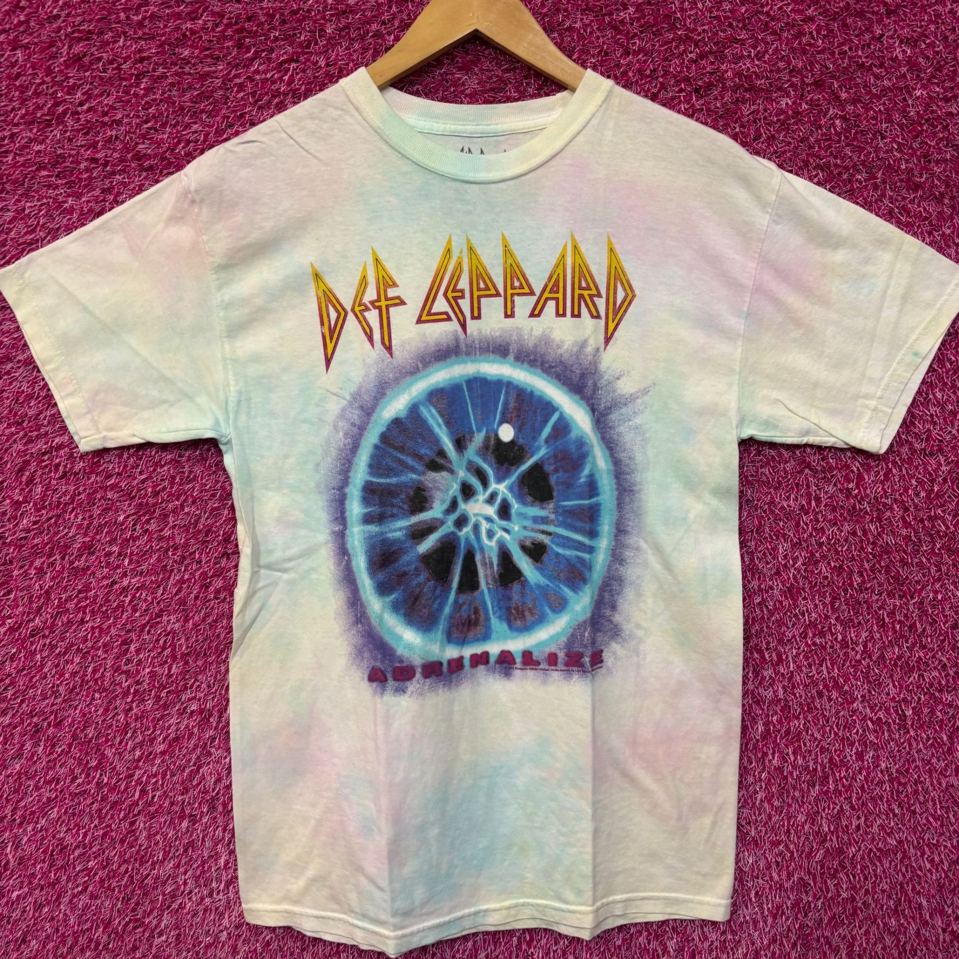 Def Leppard Adrenalize tiedye Rock Tshirt size medium. generally measures 19 inches pit to pit and 29 inches long never worn first hand overstock great condition with an amazing one of a kind graphic for fans of the legendary rock band Def Leppard