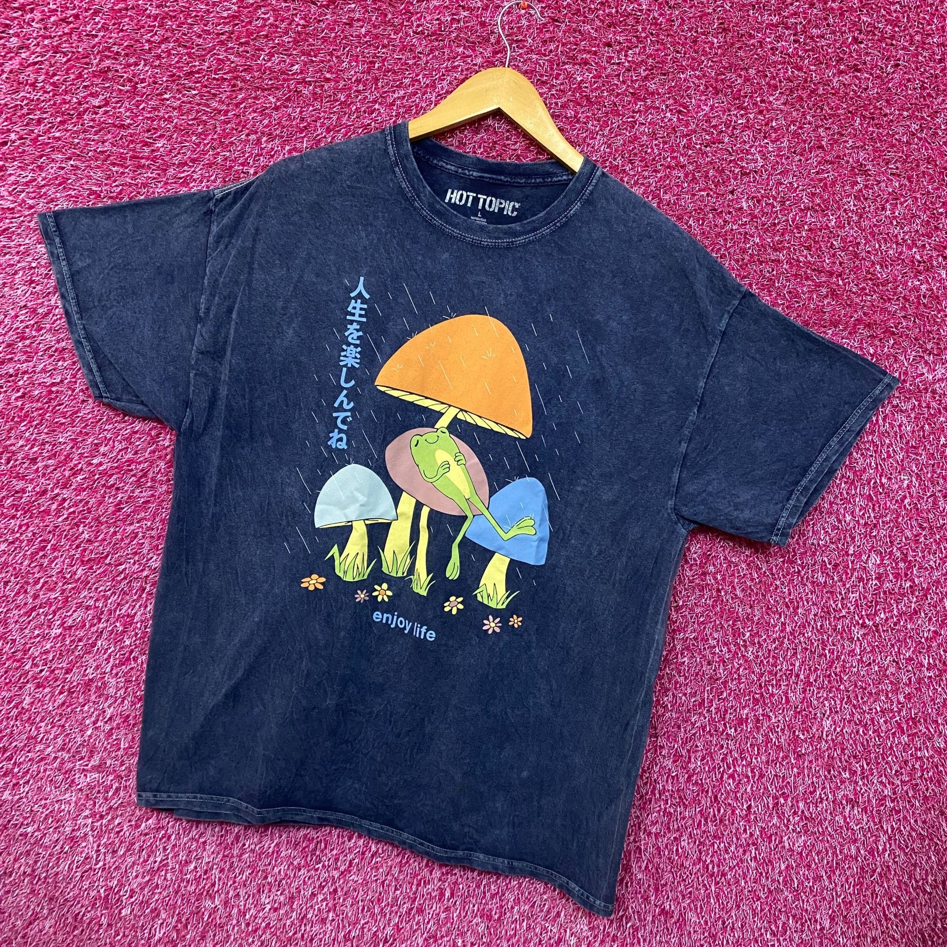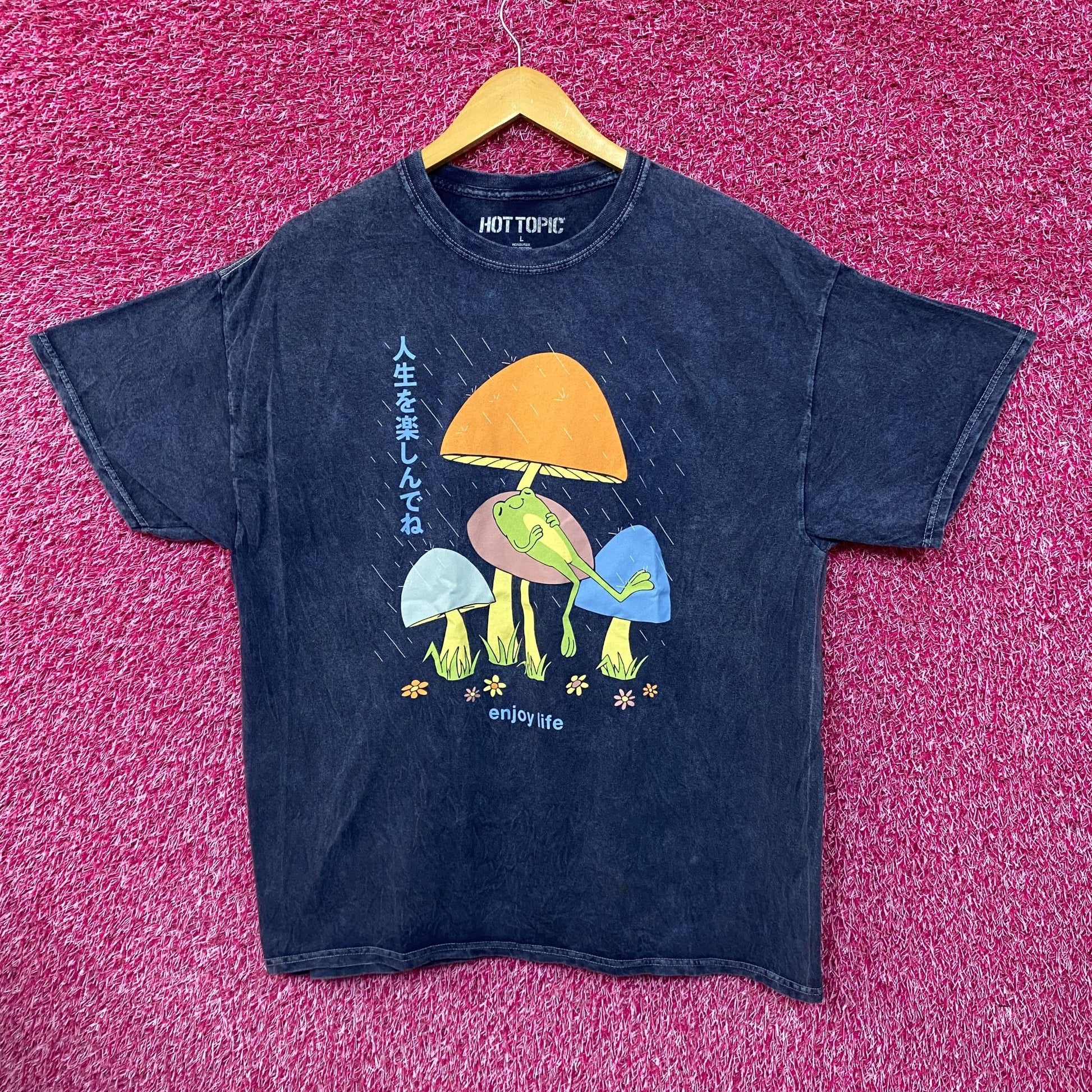 Enjoy Life Zen Frog Japanese Garden Pop Art Hot Topic Tee L generally measures 24 inches pit to pit and 28 inches long never worn first hand overstock great condition with an amazing graphic