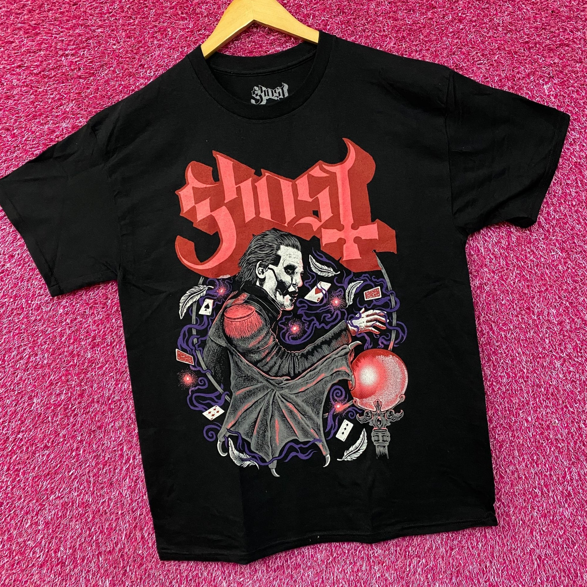 Ghost Cardinal Copia Crystal Ball Cards Heavy Metal Rock T-Shirt Large. Generally measures 21 inches pit to pit and 30 inches long. Amazing graphic design shirt, perfect for heavy metal and Ghost fans. New never worn overstock in great condition.