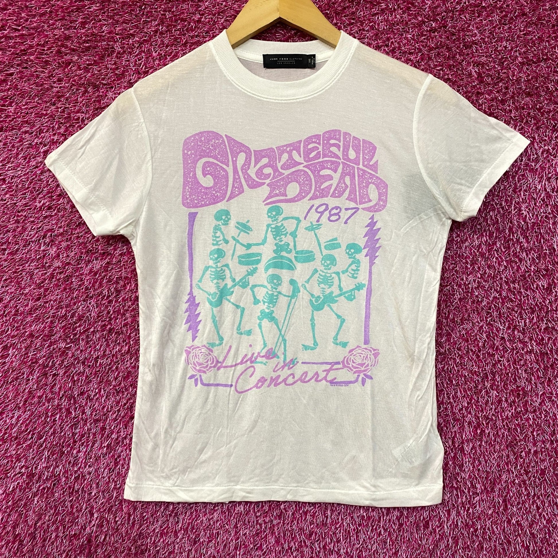 Grateful Dead Live In Concert Vintage Style Tissue T-Shirt Extra Extra Small. Generally measures 15 inches pit to pit and 24 inches Long. Amazing graphic design shirt, perfect for Grateful Dead fans. New never worn overstock in great condition.