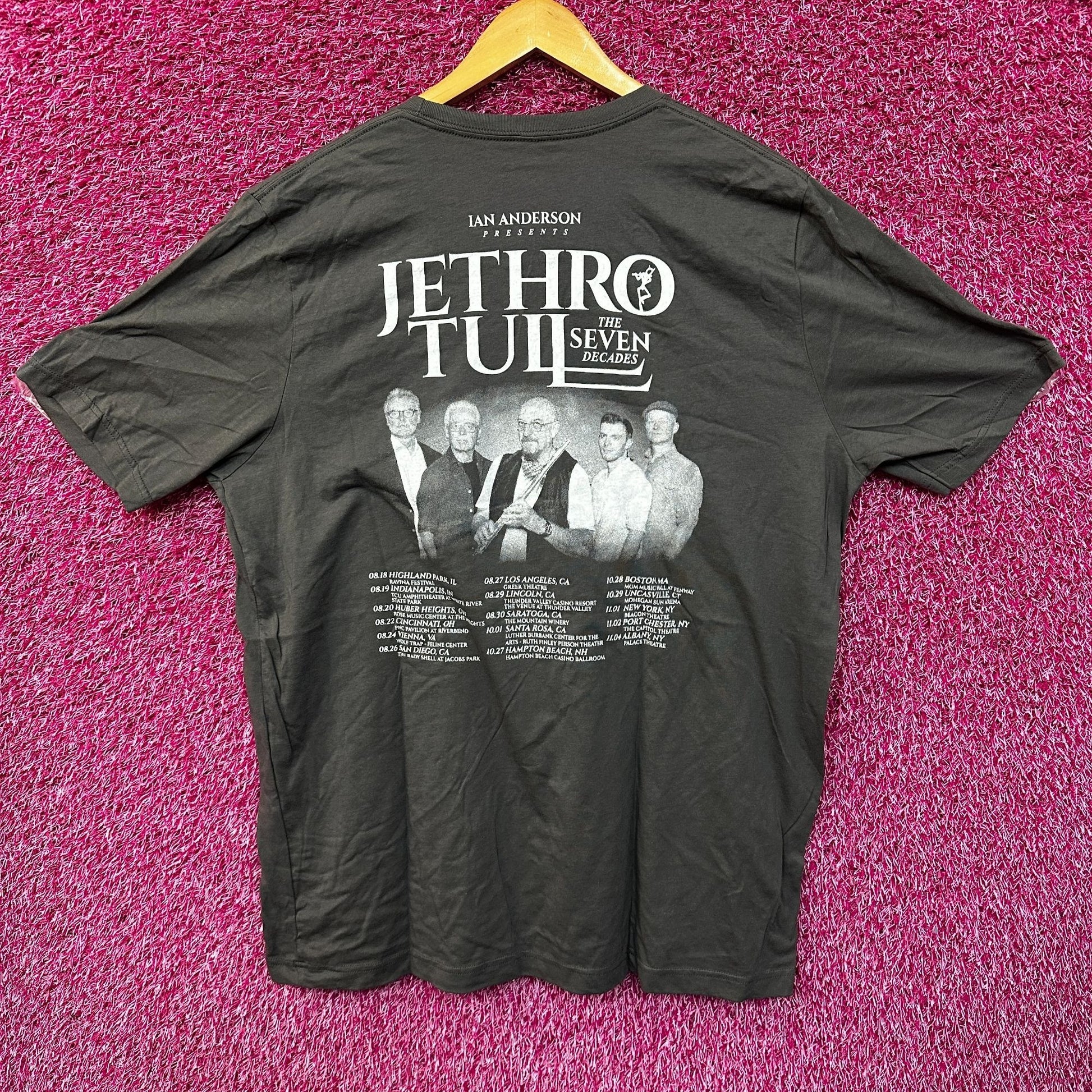 Jethro Tull The Seven Decades Tour Tshirt size 2xl generally measures 25 inches pit to pit and 31 inches long amazing graphic on both sides of the shirt amazing shirt for fans of the legendary rock band Jethro Tull and the Seven Decades tour stop amazing tshirt