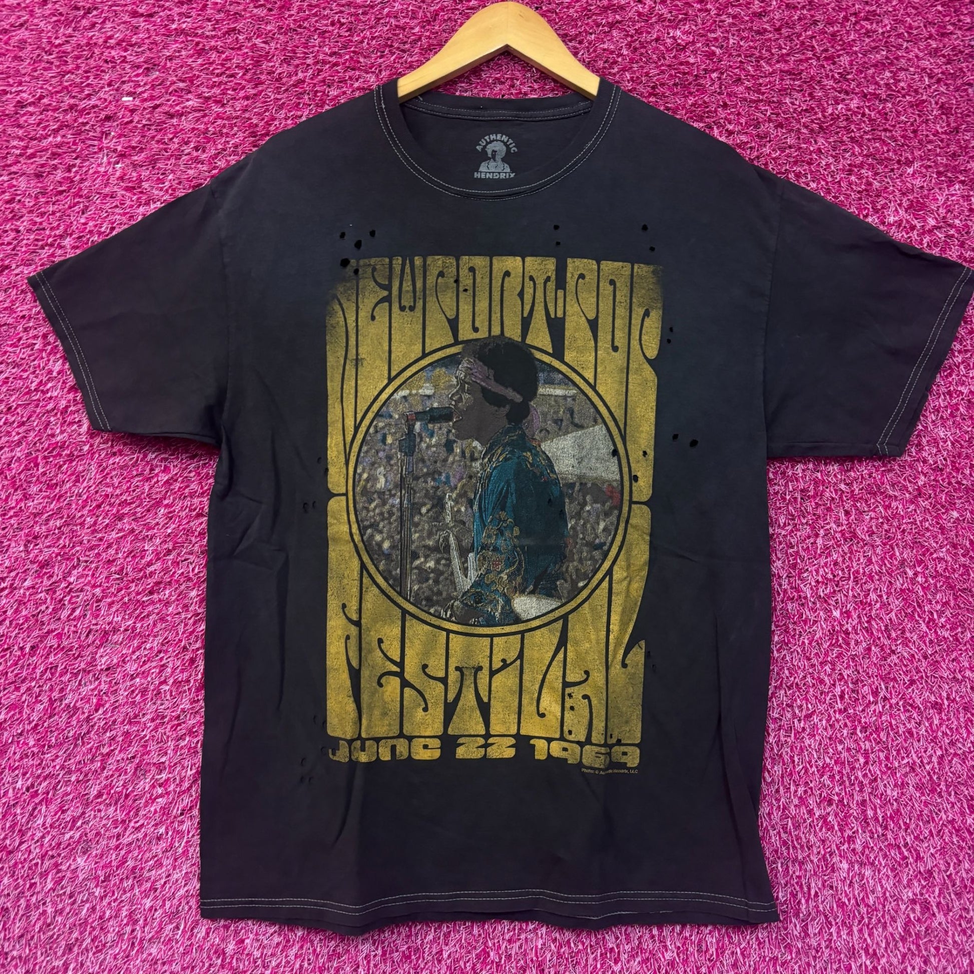 Jimi Hendrix 1969 Newport Pop Festival Distressed Rock Tee M