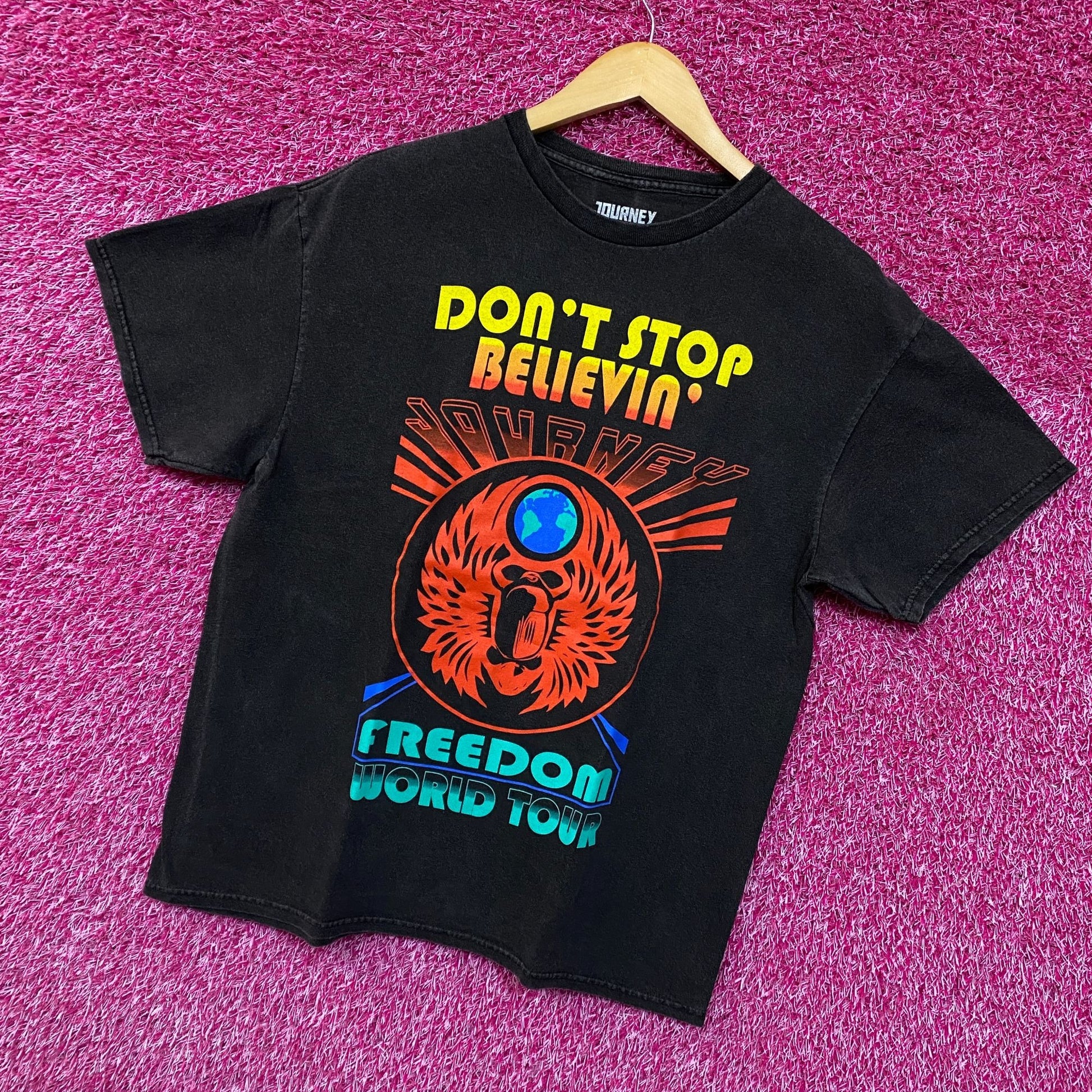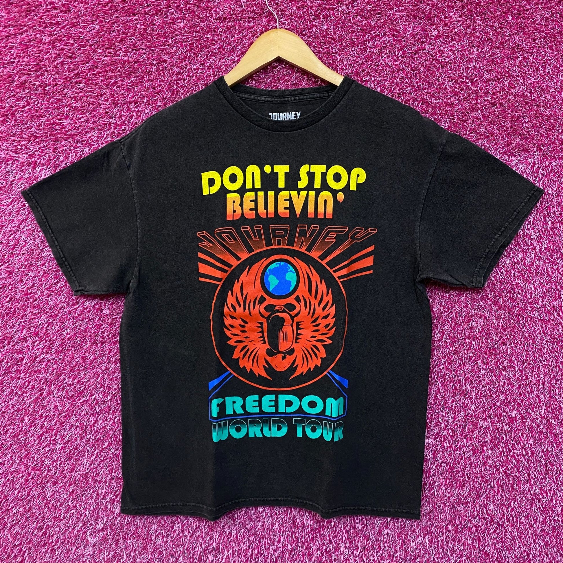 Journey Don't Stop Believin' Tshirt size large Generally measures 22 inches pit to pit and 27 inches long never worn first hand overstock great condition with an amazing graphic
