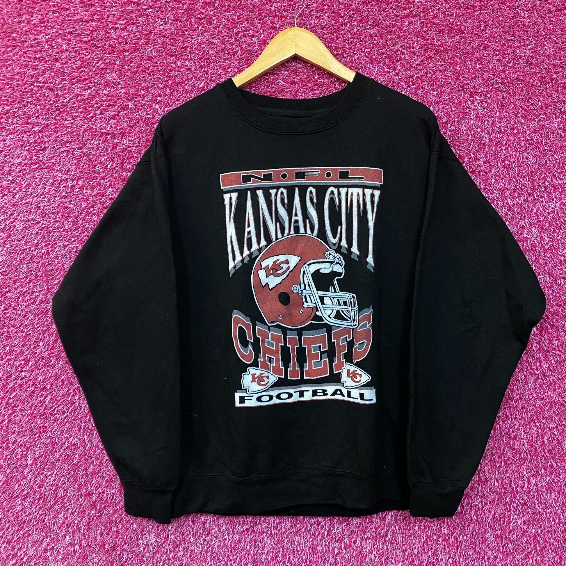 Junk Food Clothing NFL Kansas City Chiefs Helmet Crewneck Sweatshirt Large. Generally measures 23 inches pit to pit and 27 inches long. Amazing graphic design crewneck sweatshirt helmet logo, perfect for Kansas City Chiefs fans. New never worn overstock and in great condition.