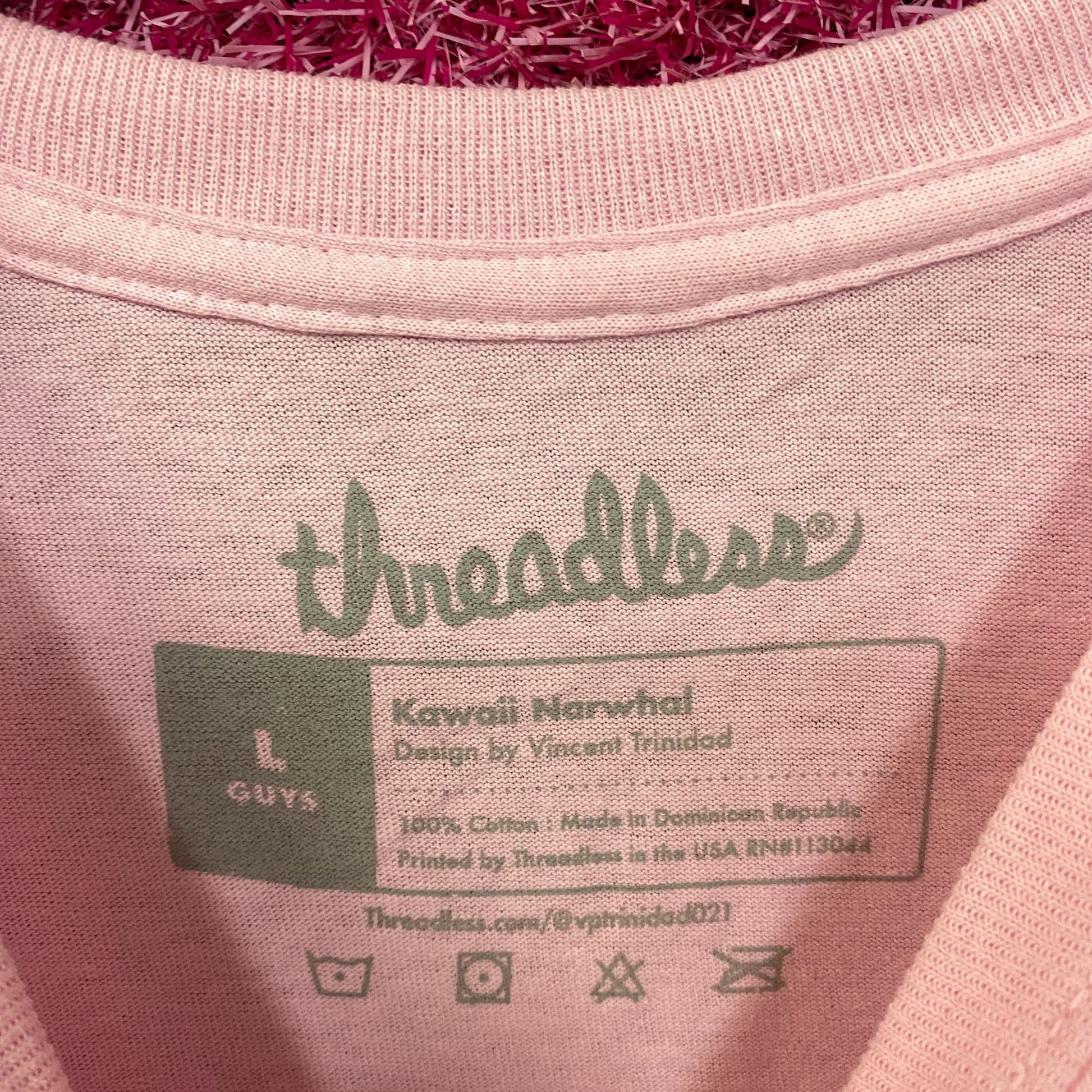 Kawaii Narwhal - Kaku "Horn" - Cute Graphic Pink T-Shirt Large. Generally measures 21 inches pit to pit and 29 inches long . Amazing cute graphic T-Shirt. New never worn but has distressing on sleeve.