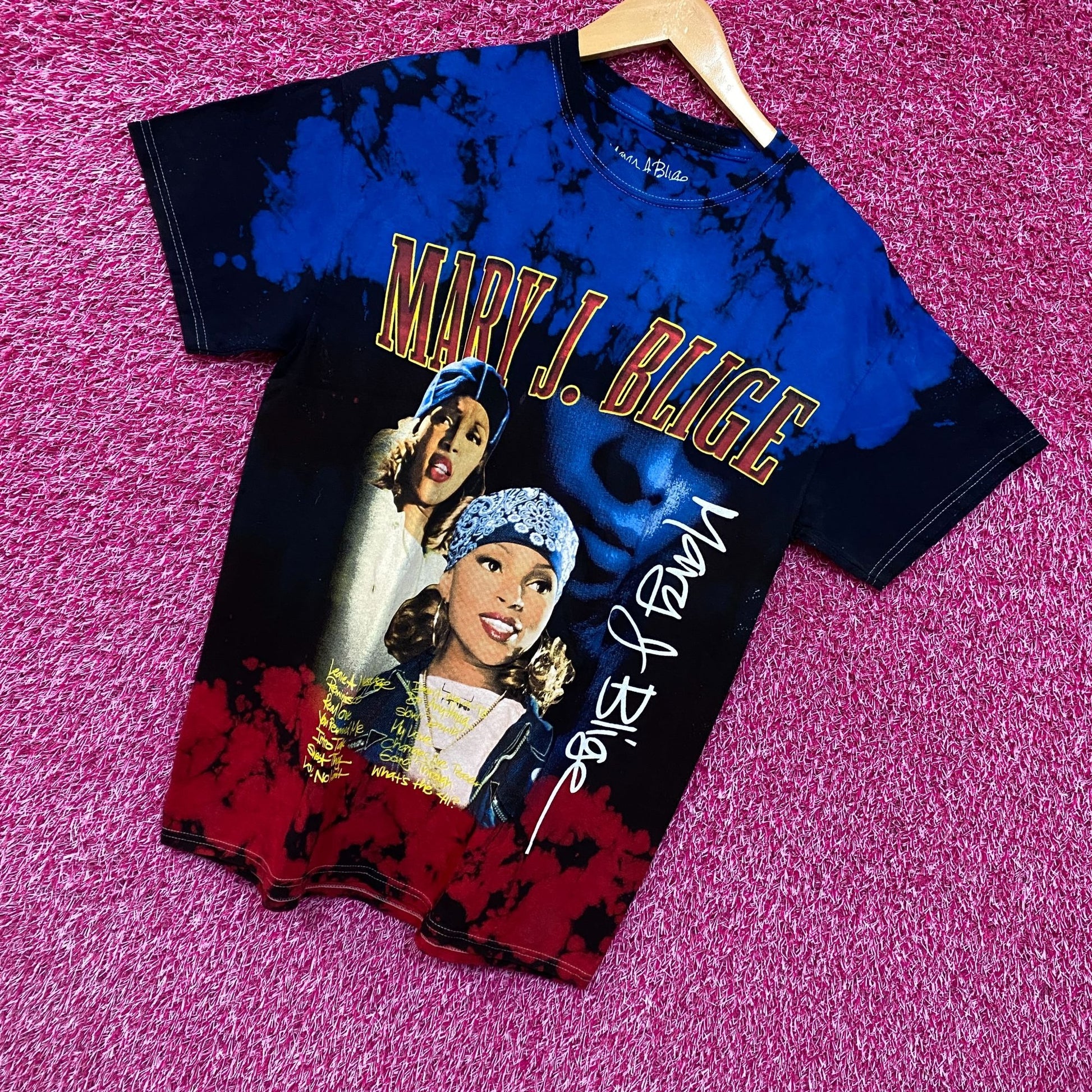 Mary J Blige The What Tie Dye Rap Tshirt size small generally measures 20 inches pit to pit and 27 inches long never worn first hand overstock.great condition with an amazing one of a kind graphic for fans of the R&B Singer Mary J Blige