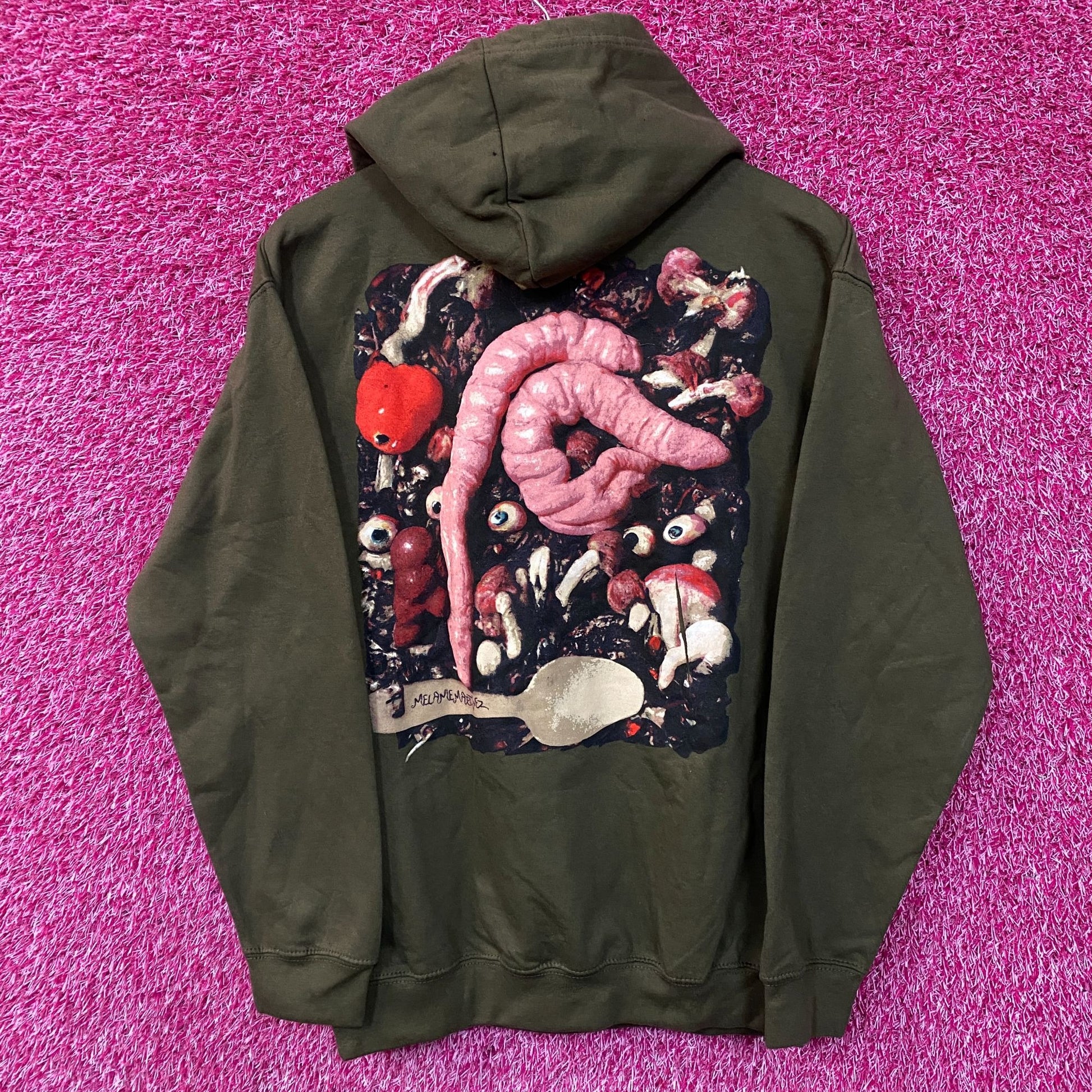 Melanie Martinez Leeches Trilogy Tour Hoodie size Medium generally measures 21 inches pit to pit and 27 inches long has crack on the back graphic new great overstock condition amazing hoodie for fans of melanie Martinez