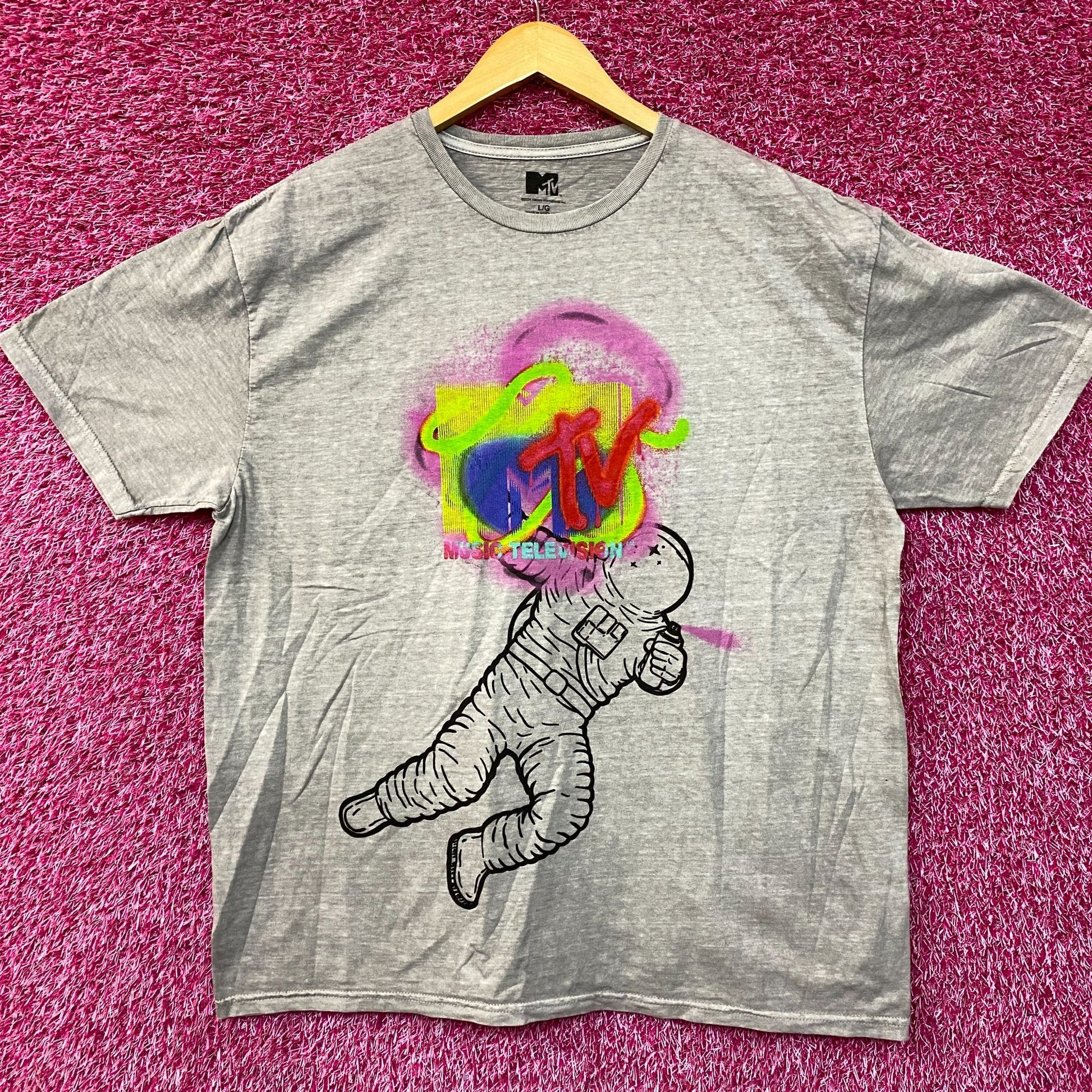 MTV Astronaut Moon Man Trophy Poster T-Shirt Large. Generally measures 24 inches pit to pit and 29 inches long. Amazing graphic design shirt, perfect for MTV fans. New never worn overstock in great condition.