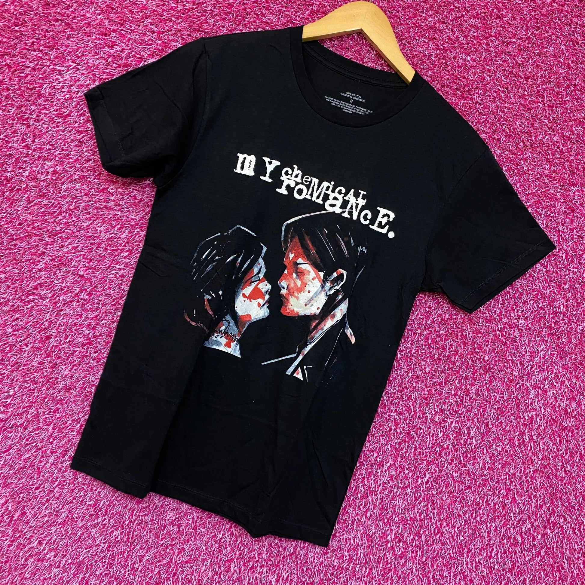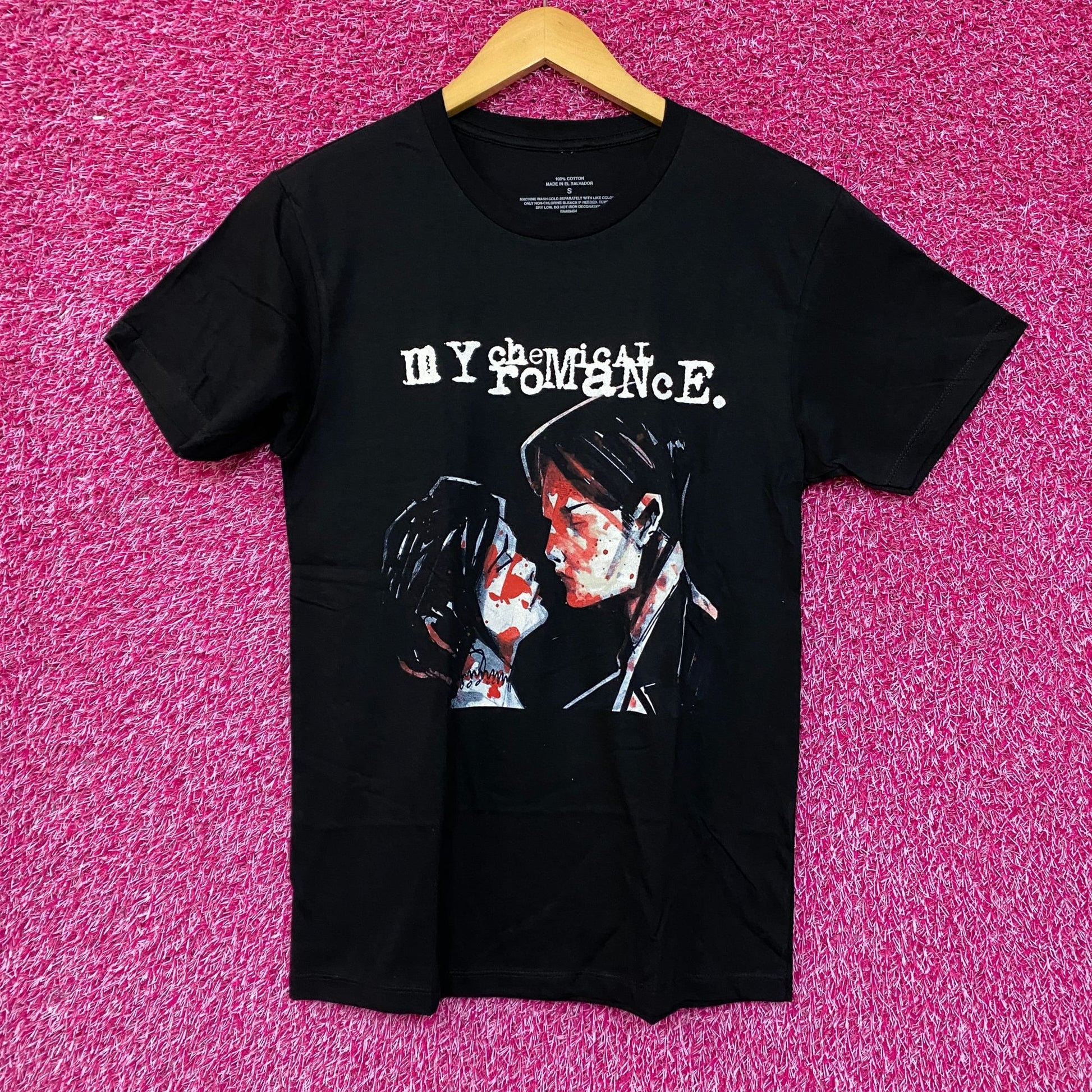 My Chemical Romance Three Cheers for Sweet Revenge Tshirt size small generally measures 17 inches pit to pit 26 inches long amazing shirt new great condition perfect for fans of the emo band MCR my chemical romacne