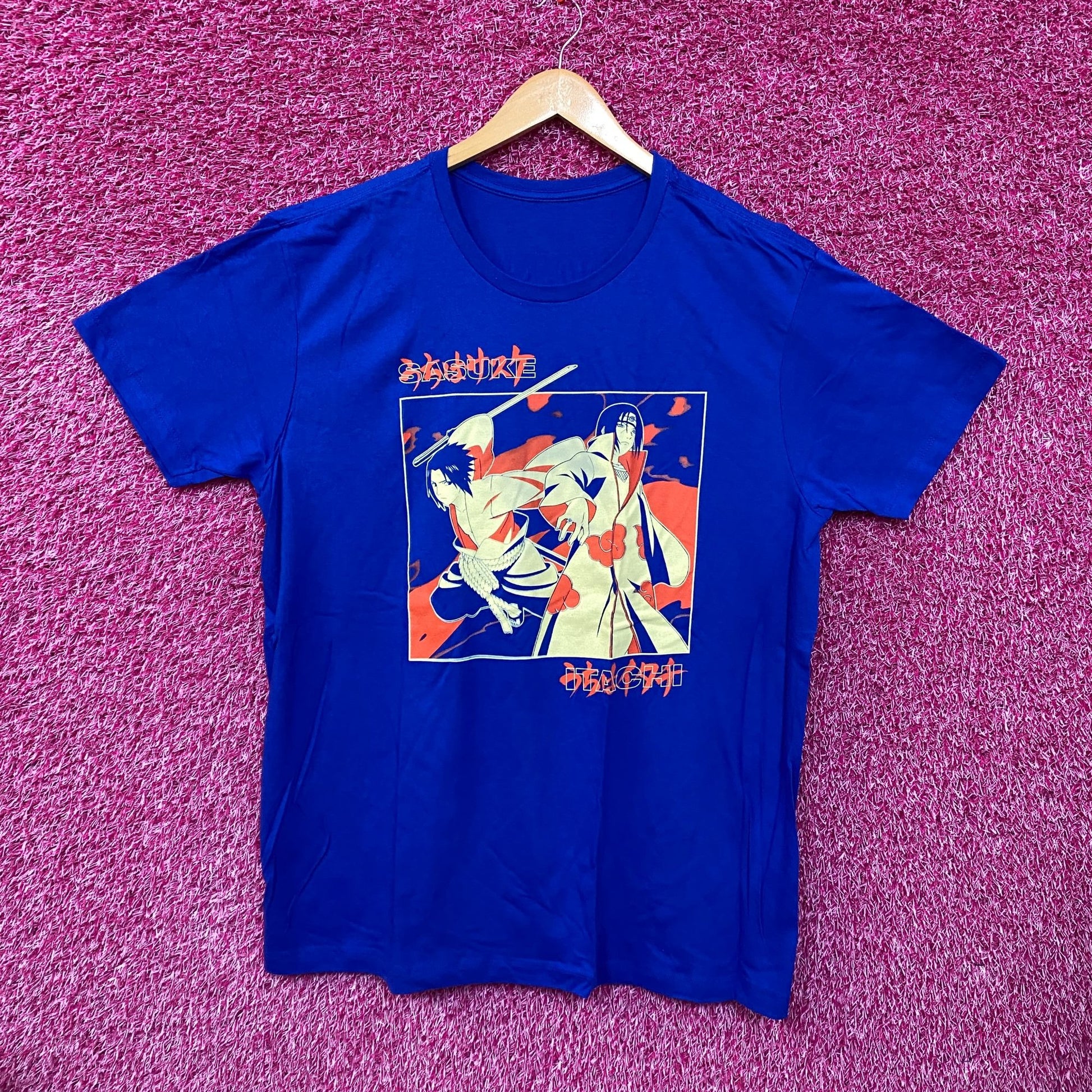 Naruto Sasuke Blue Anime Tshirt size Extra Large generally measures 24 inches pit to pit 31 inches long amazing graphic on both sides of the shirt new overstock condition