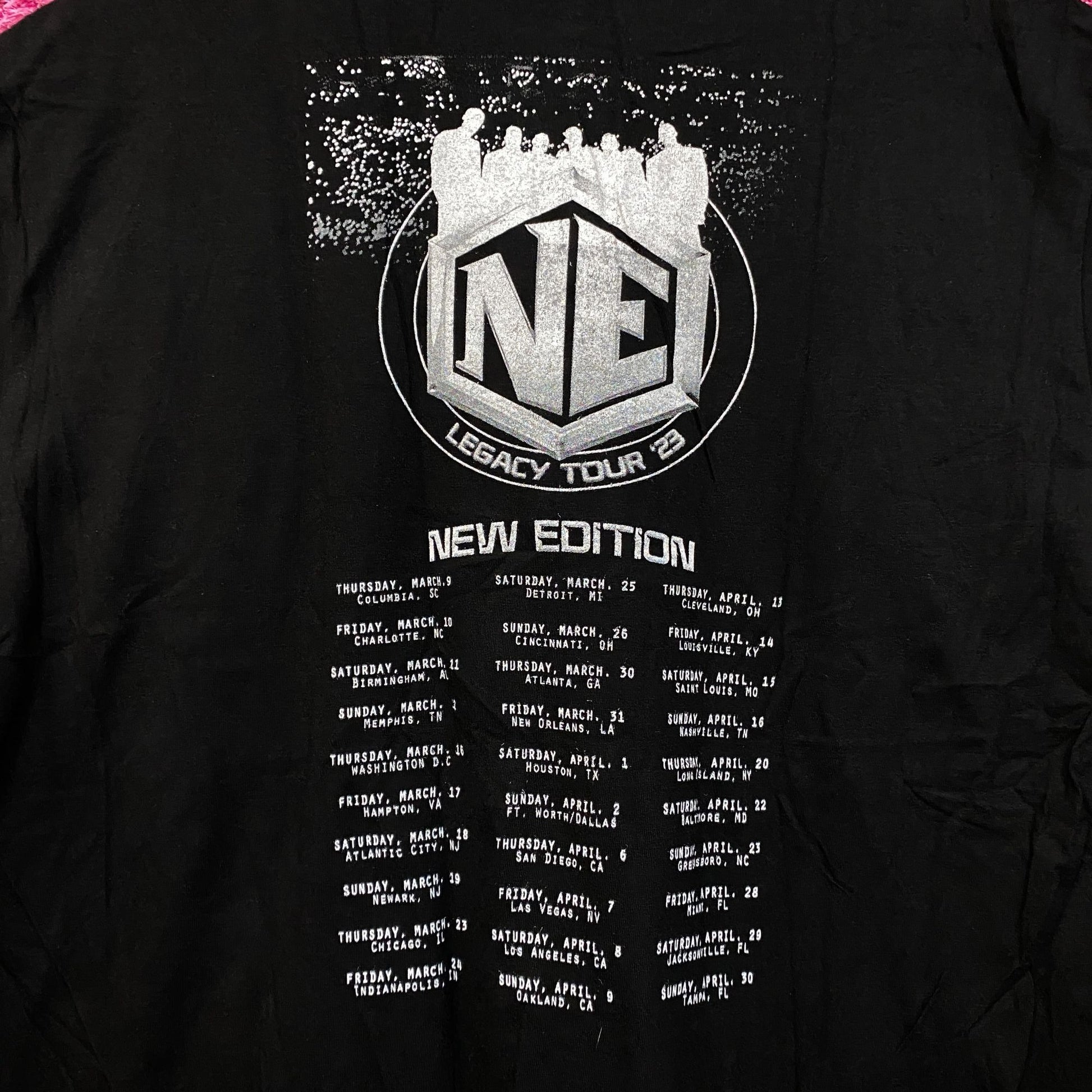 New Edition Self-titled Album Art 2023 Legacy Tour Tee 2X generally measures 25 inches pit to pit and 31 inches long never worn first hand overstock great condition with an amazing one of a kind graphic for fans of the iconic R&B group New Edition. The tee has markings from the manufacturing process that could possibly wash off.