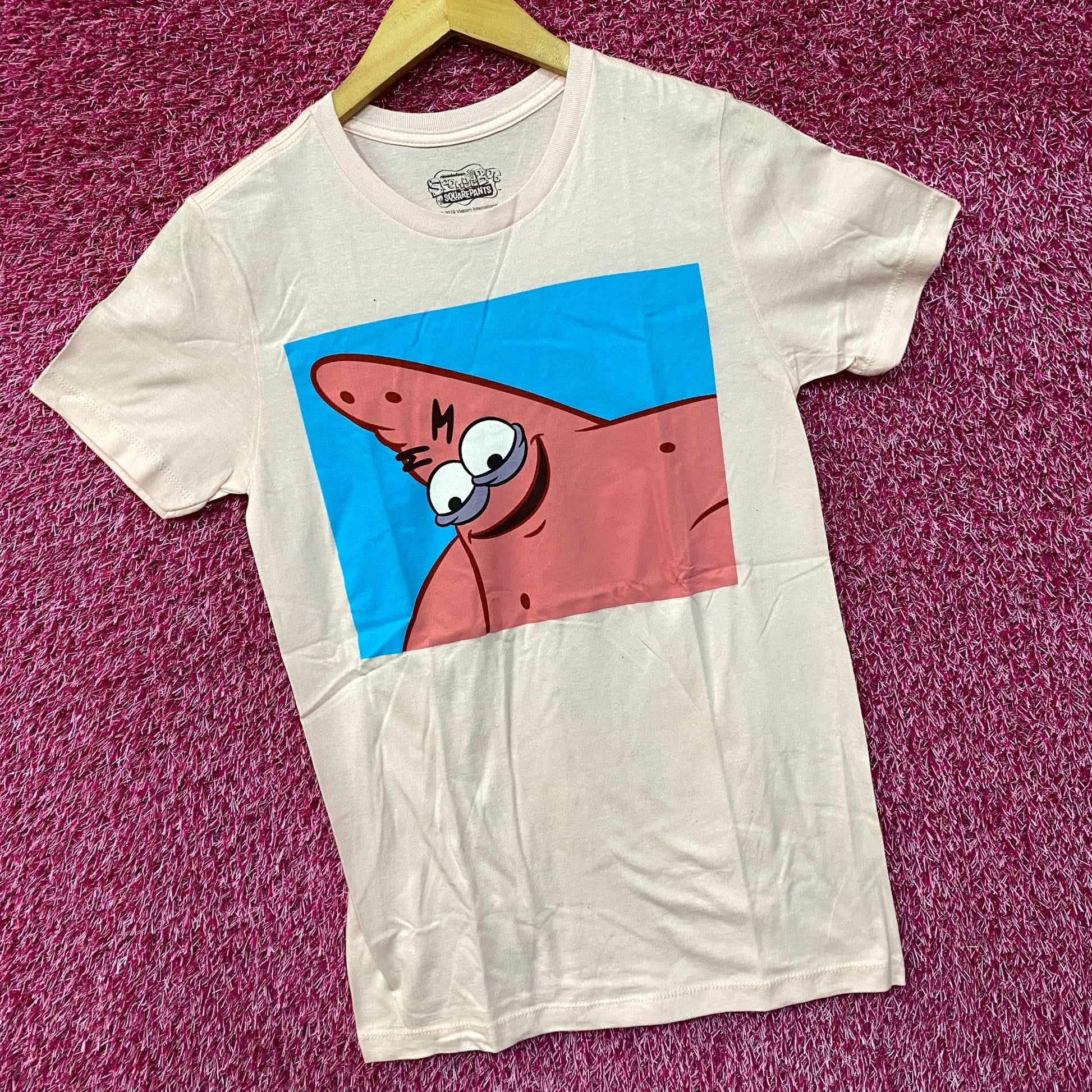 Nickelodeon Spongebob SquarePants Patrick Meme Pink T-Shirt Extra Small. Generally measures 16 inches pit to pit and 26 inches Long. Amazing funny graphic design shirt, perfect for Spongebob meme fans. New never worn overstock in great condition.
