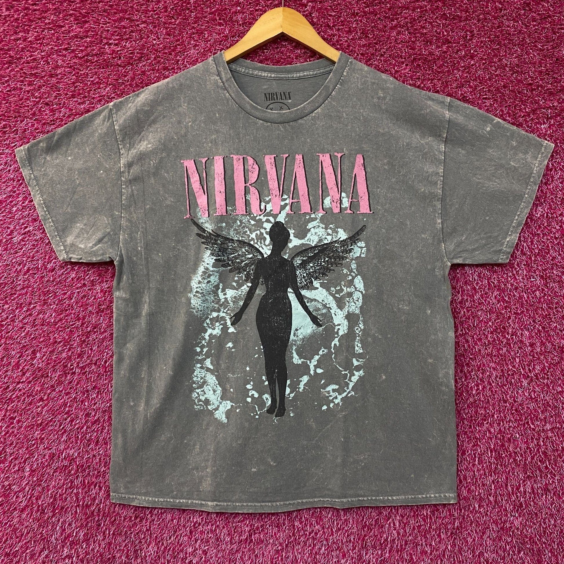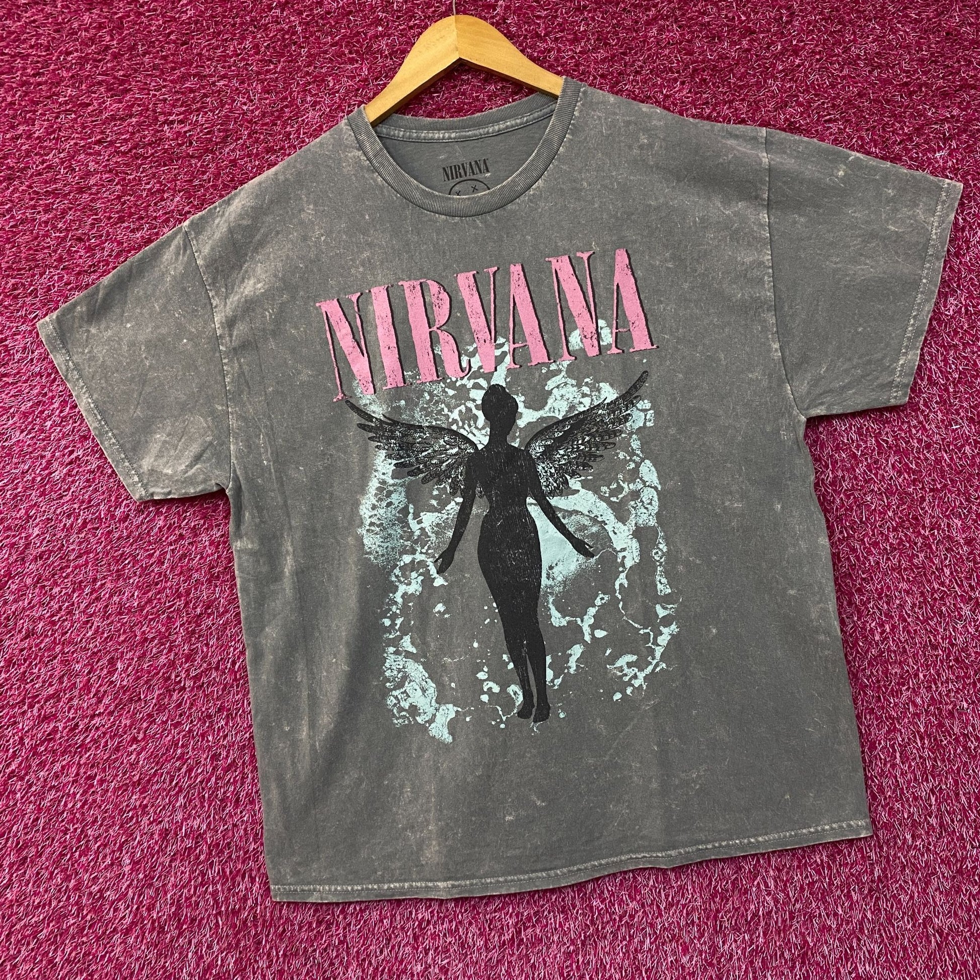 Nirvana In Utero Album Art T-Shirt XL. Generally measures 24 inches pit to pit and 29 inches long. Amazing graphic design shirt depicting Nirvana In Utero album cover in an artistic style In pink and blue. New never worn great condition.