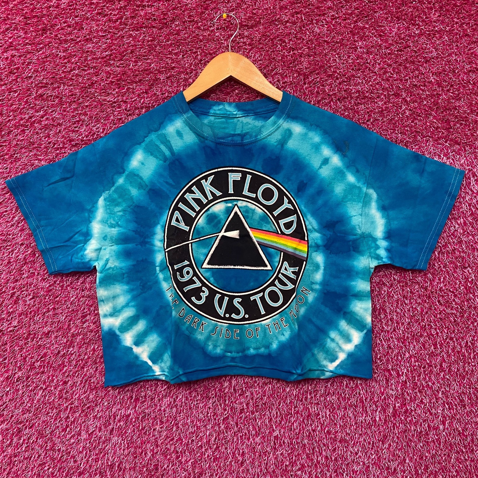 Pink Floyd Dark Side of the Moon 1973 US Tour Tie Dye Crop Top size Small generally measures approximately 18 inches pit to pit 19 inches long tie dye might vary amazing graphic perfect for fans of the legendary rock band pink floyd