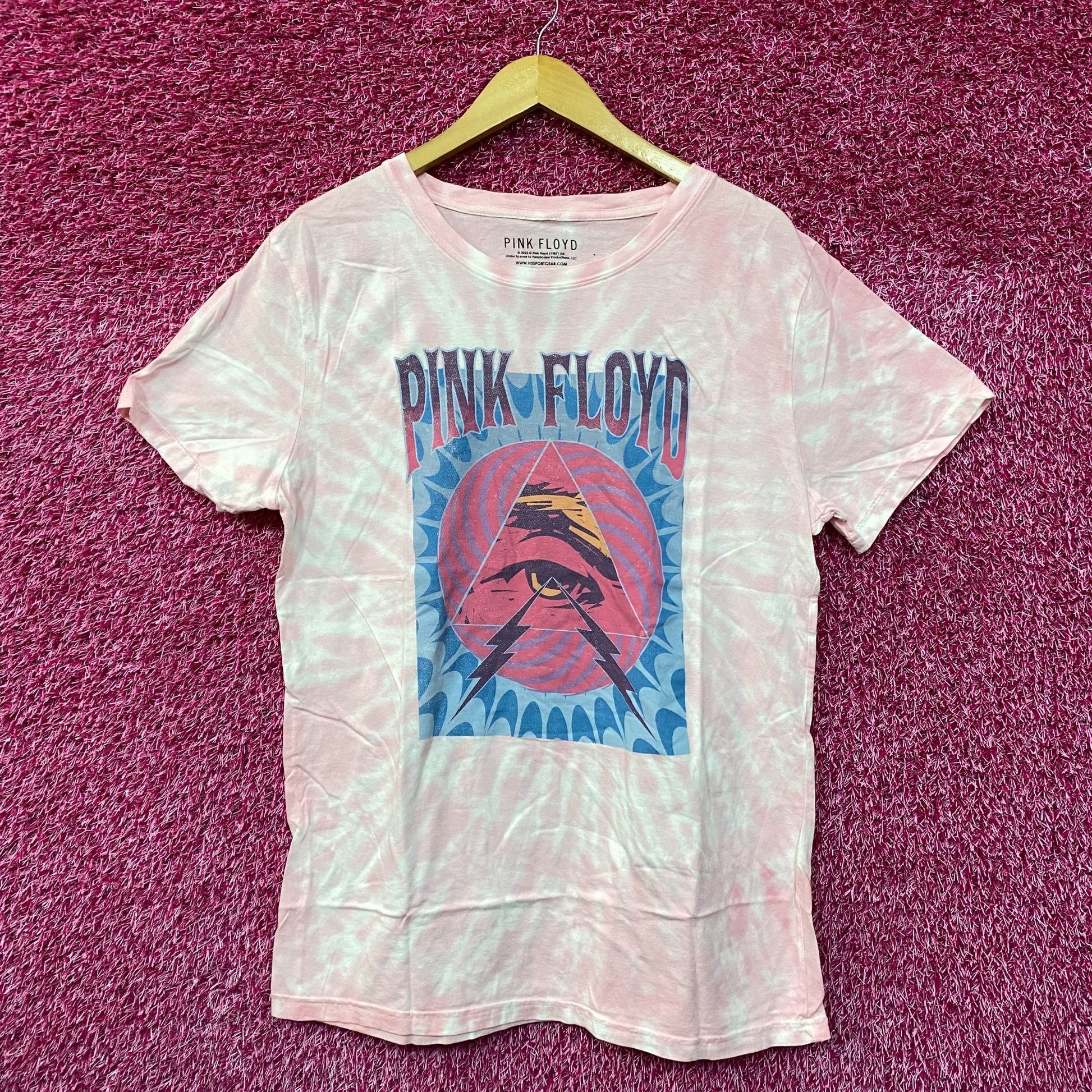 Pink Floyd Dark Side of the Moon Psychedelic Band Tie Dye large Generally measures 22 inches pit to pit and 30 inches long never worn first hand overstock great condition with an amazing graphic