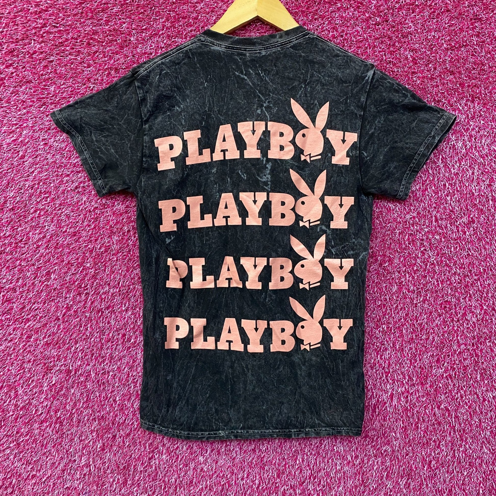 Playboy Logo Bunny Emblem Acid Wash T-Shirt Small
