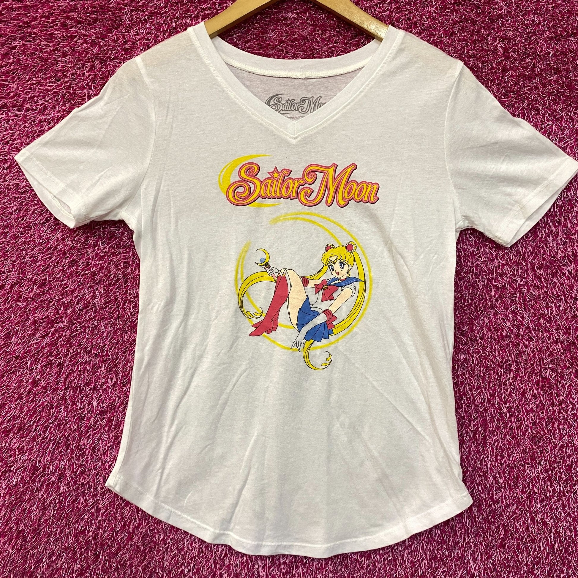 Sailor Moon Anime Graphic V-Neck T-Shirt Small