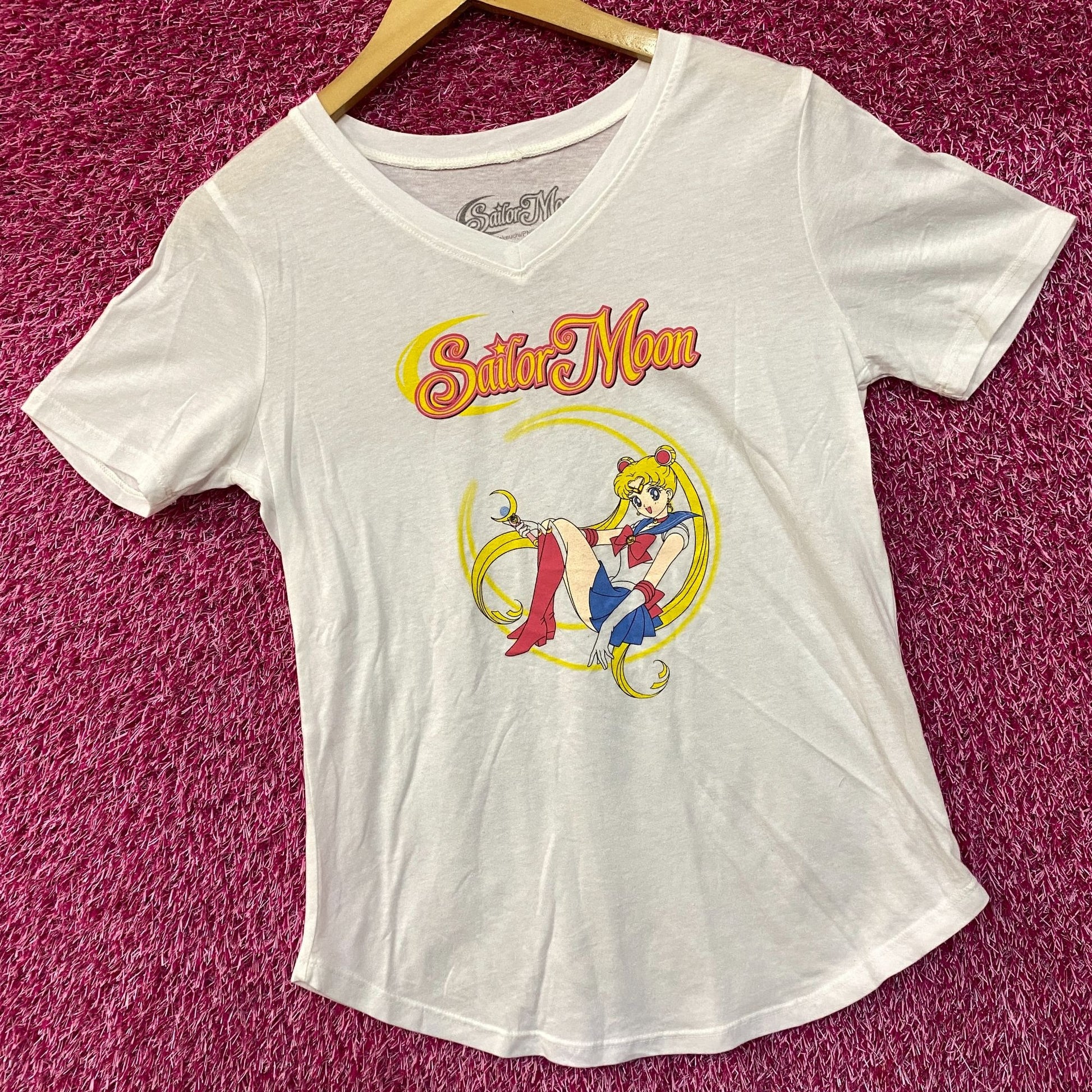Sailor Moon Anime Graphic V-Neck T-Shirt Small. Generally measures 17 inches pit to pit and 25 inches Long. Amazing graphic design shirt, perfect for Sailor Moon fans. New never worn overstock in great condition.