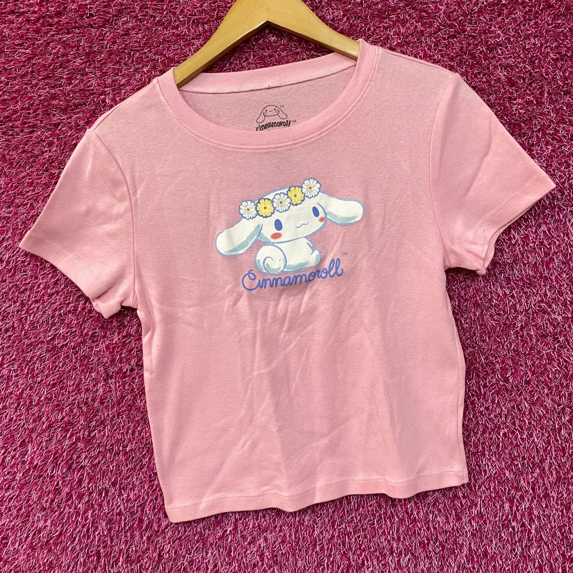 Sanrio Cinnnamoroll Flower Crown Pink Croptop T-Shirt Large