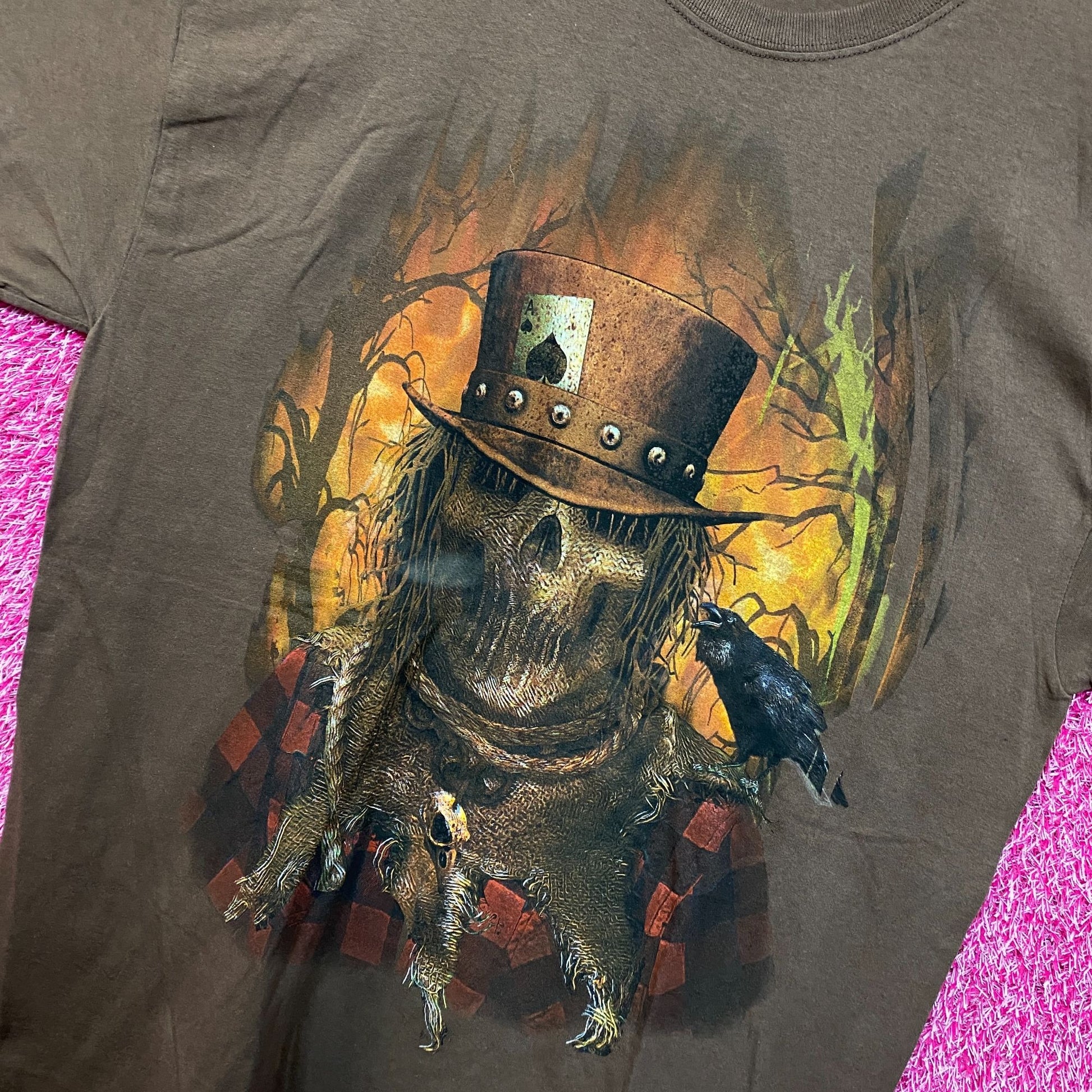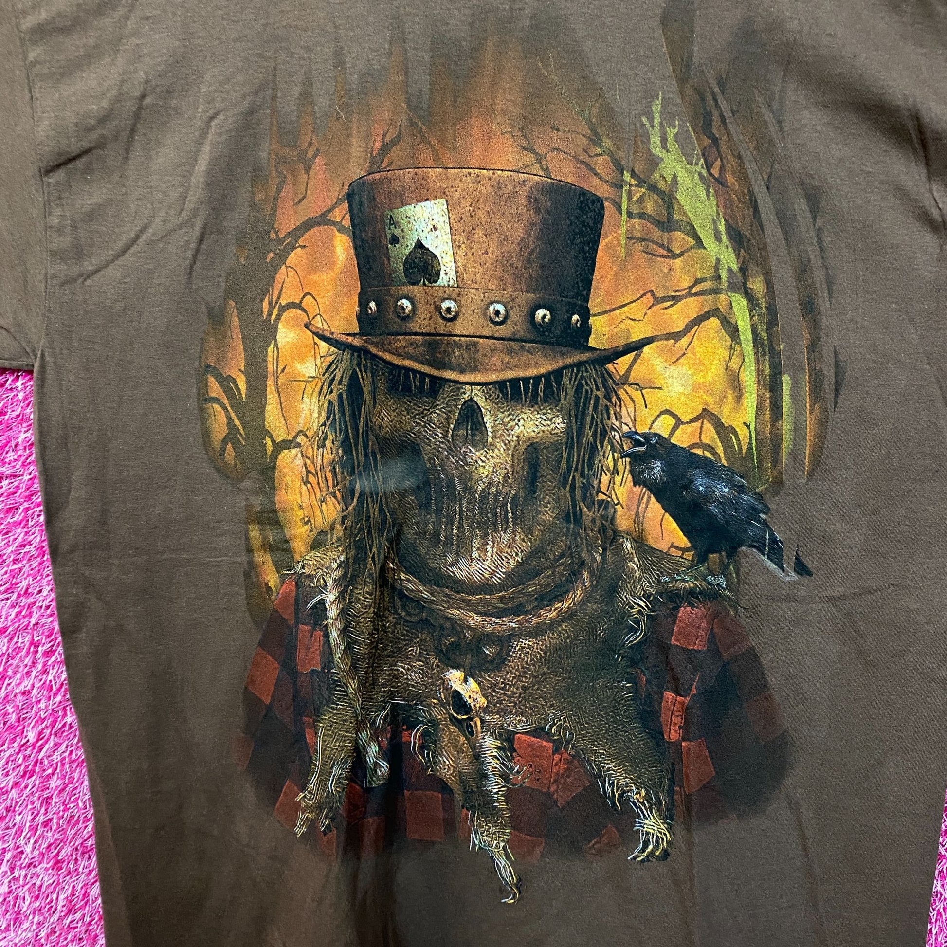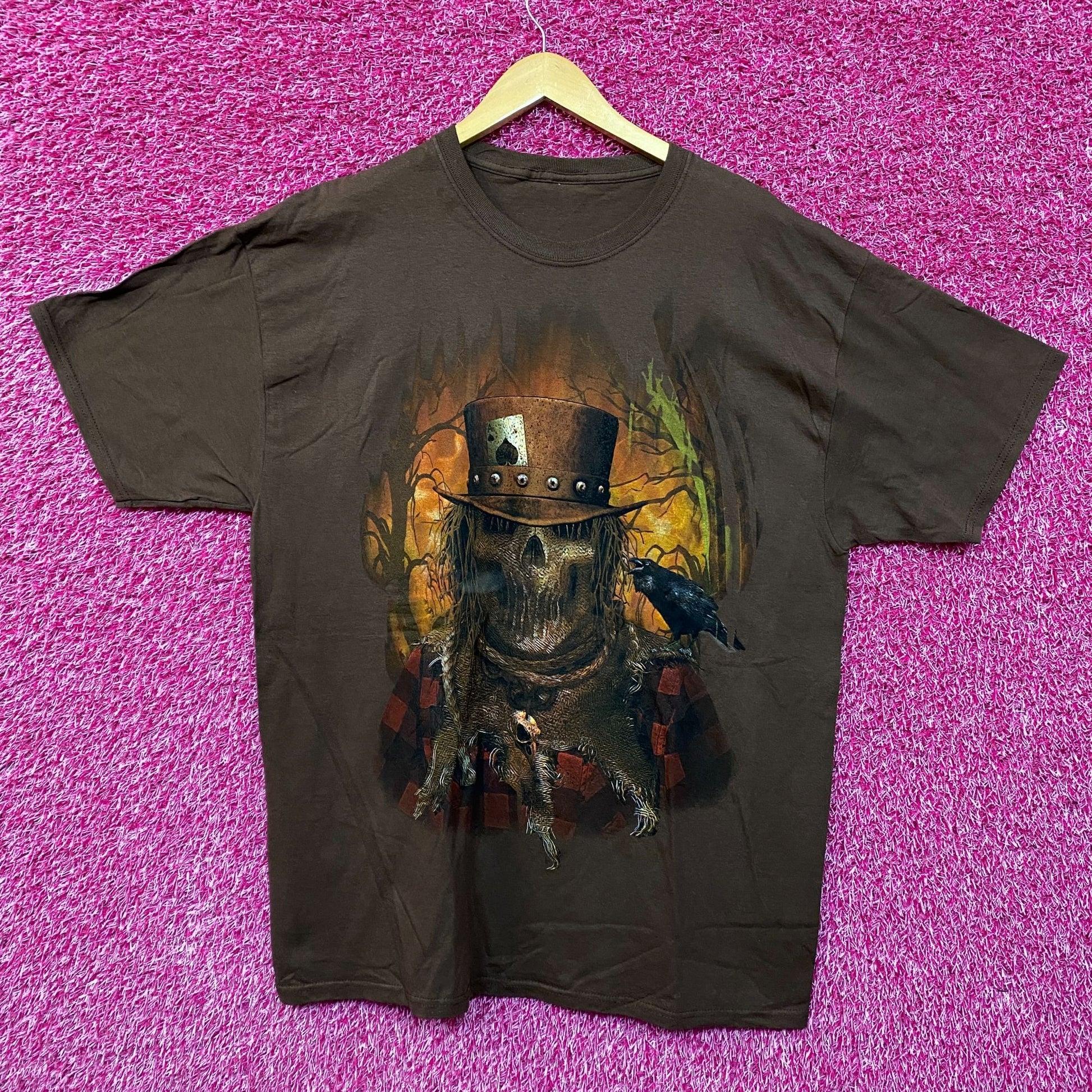 Scarecrow Horror Brown Tshirt size Extra Large generally measures 24 inches pit to pit 30 inches long new overstock condition