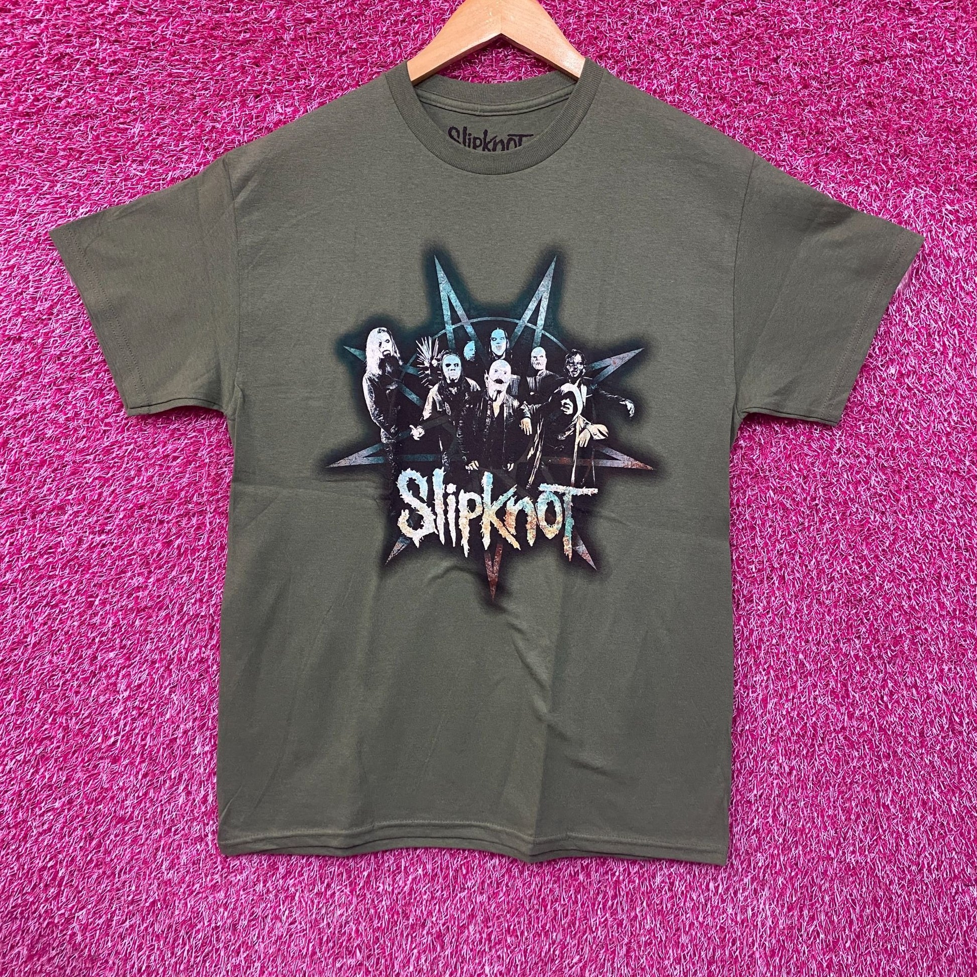 Slipknot Band Group Portrait Star Crest Green T-Shirt Large. Generally measures 19 inches Width ( pit to pit) and 28 inches Long/ Length. Amazing Shirt Perfect for fans New never worn overstock in great condition