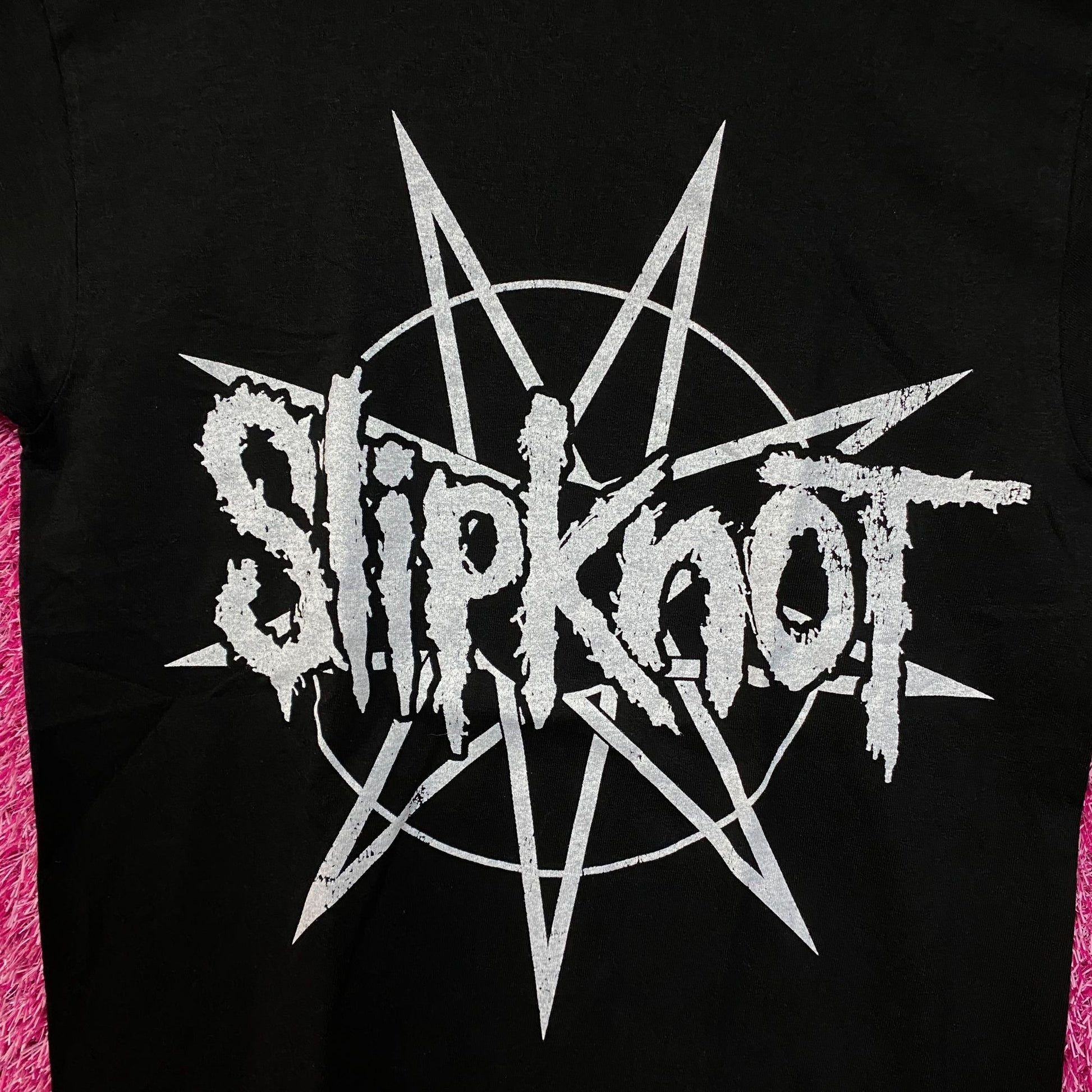 Slipknot Spell-Out & Pentagram Logo Heavy Metal Band Tee S generally measures 19 inches pit to pit and 29 inches long never worn first hand overstock great condition with an amazing graphic