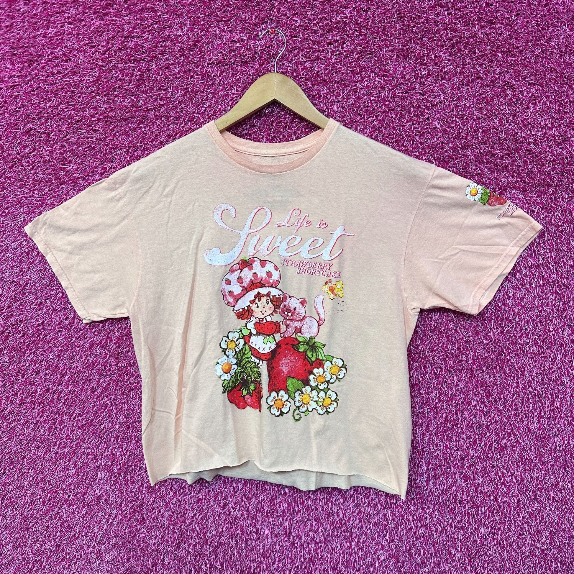 Strawberry Shortcake and Custard Lifes Sweet Crop Top L generally measures 22 inches pit to pit and 22 inches long never worn first hand overstock great condition with an amazing graphic