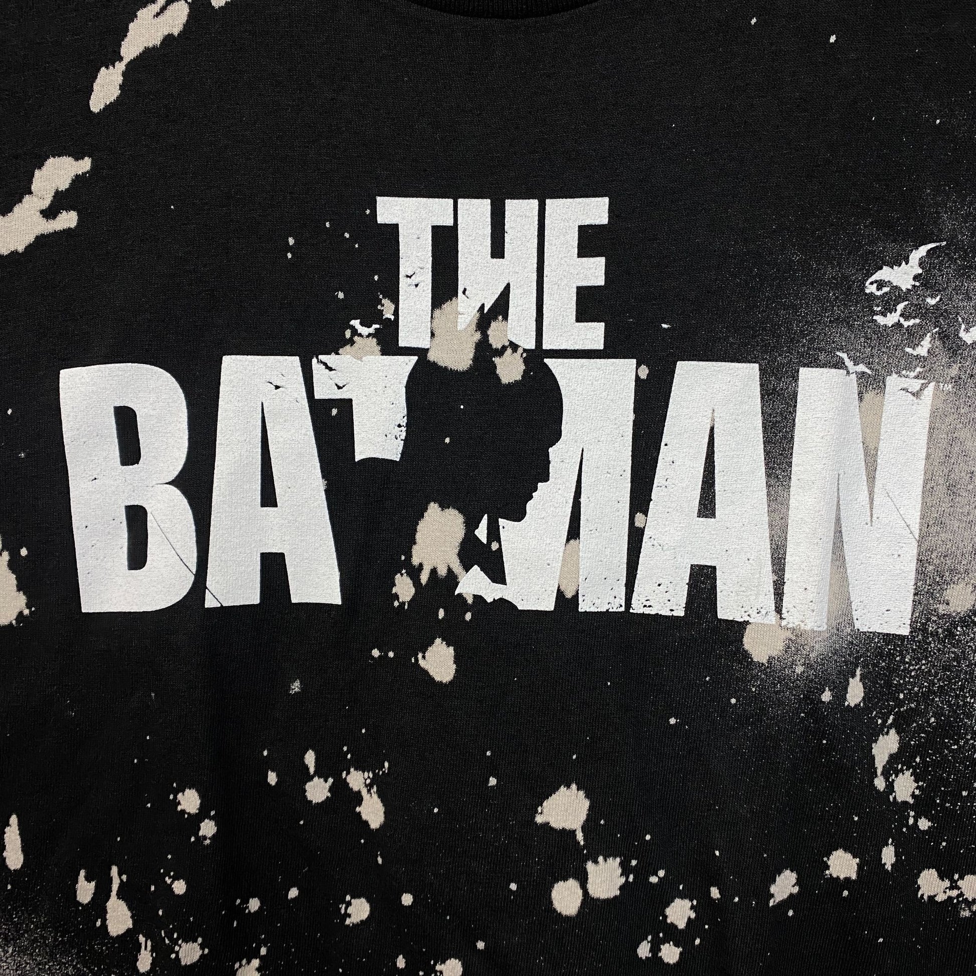 The Batman Silhouette Spell-Out Movie Poster Splatter Dye L generally measures 22 inches pit to pit and 26 inches long never worn first hand overstock great condition with an amazing graphic