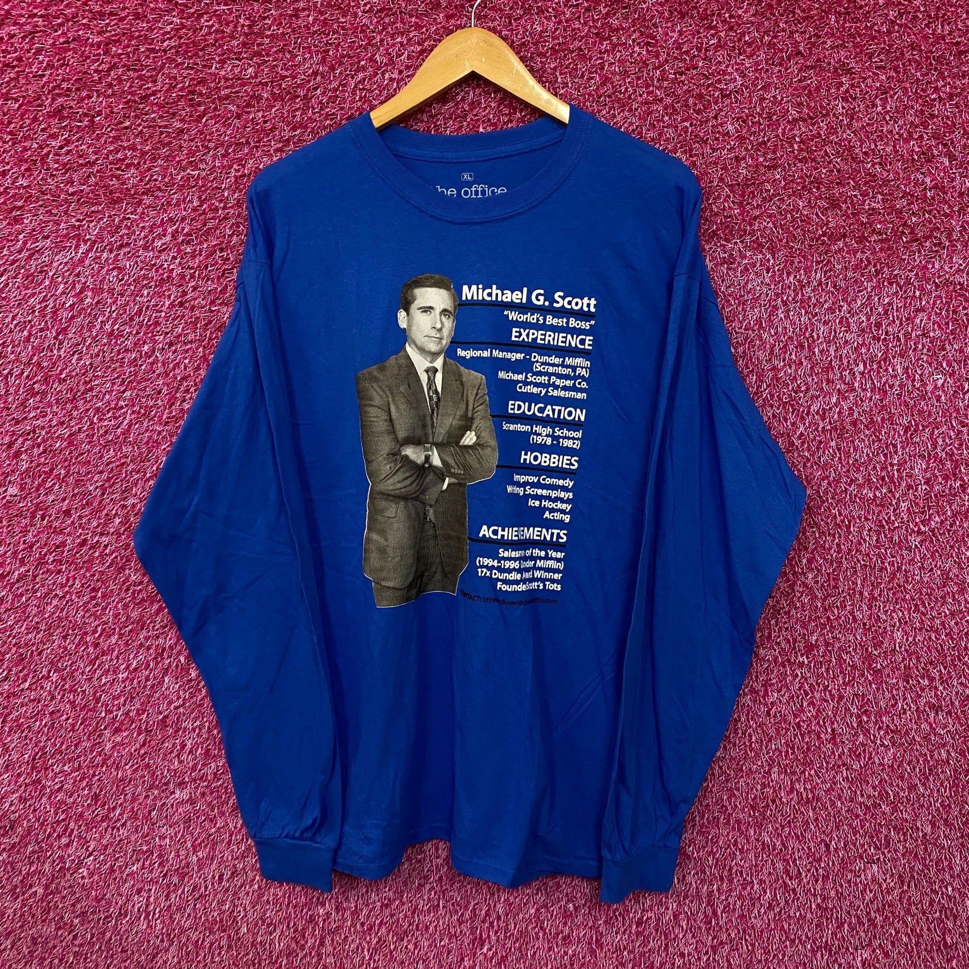 The Office Michael Scott Resume Long Sleeve Tshirt size Extra Large generally measures 24 inches pit to pit 29 inches long amazing graphic new great overstock condition amazing shirt for fans of the legendary Tv Show The Office