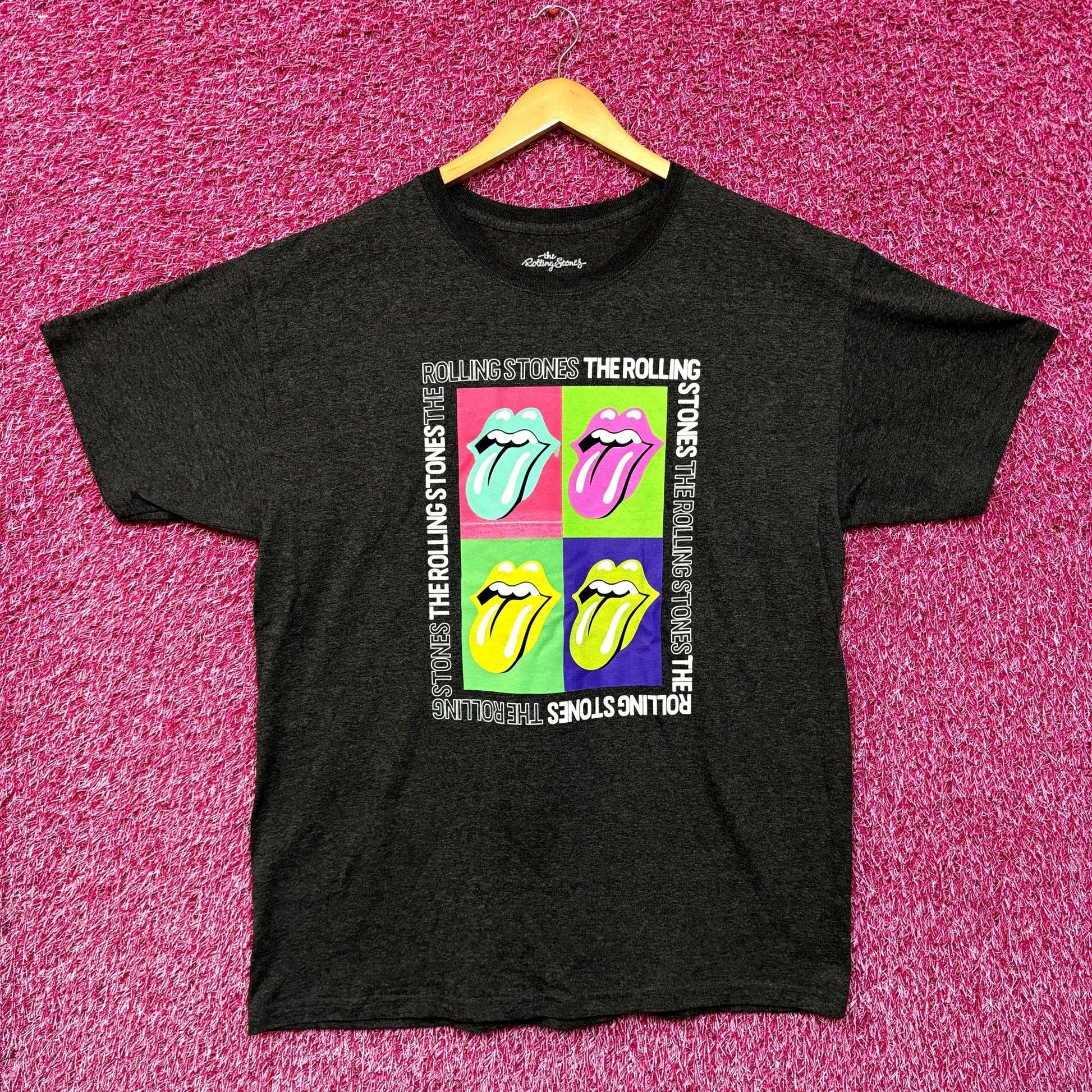 The Rolling Stones Multi Spell-Out Pop Art Hot Lips Rock Tee L