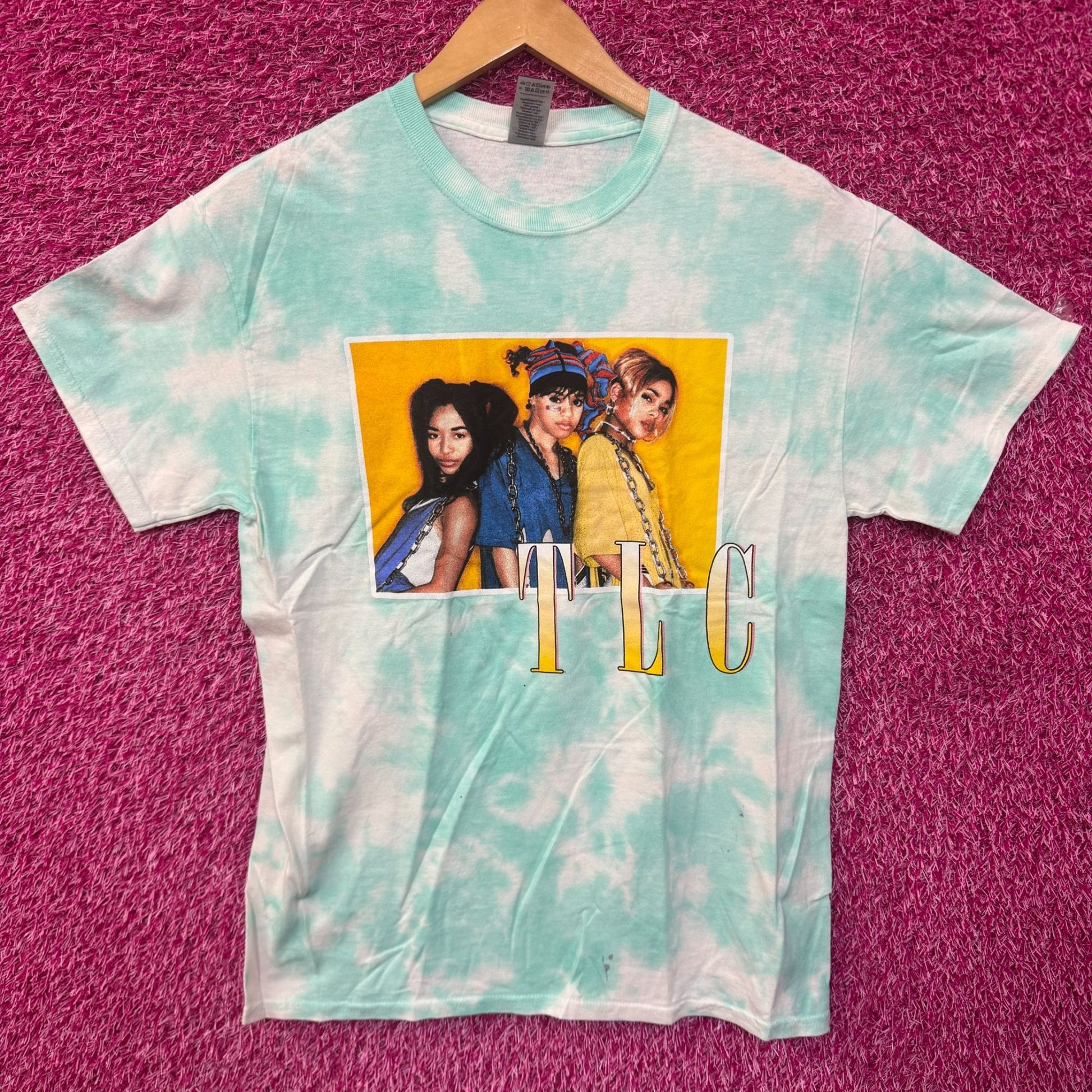 TLC T-Boz Lisa Left Eye Chilli Poster Soul Group Tie Dye M generally measures 20 inches pit to pit and 27 inches long never worn first hand overstock great condition with an amazing one of a kind graphic for fans of the iconic soul girl group TLC. This tee has markings from the manufacturing process that could possibly wash off.