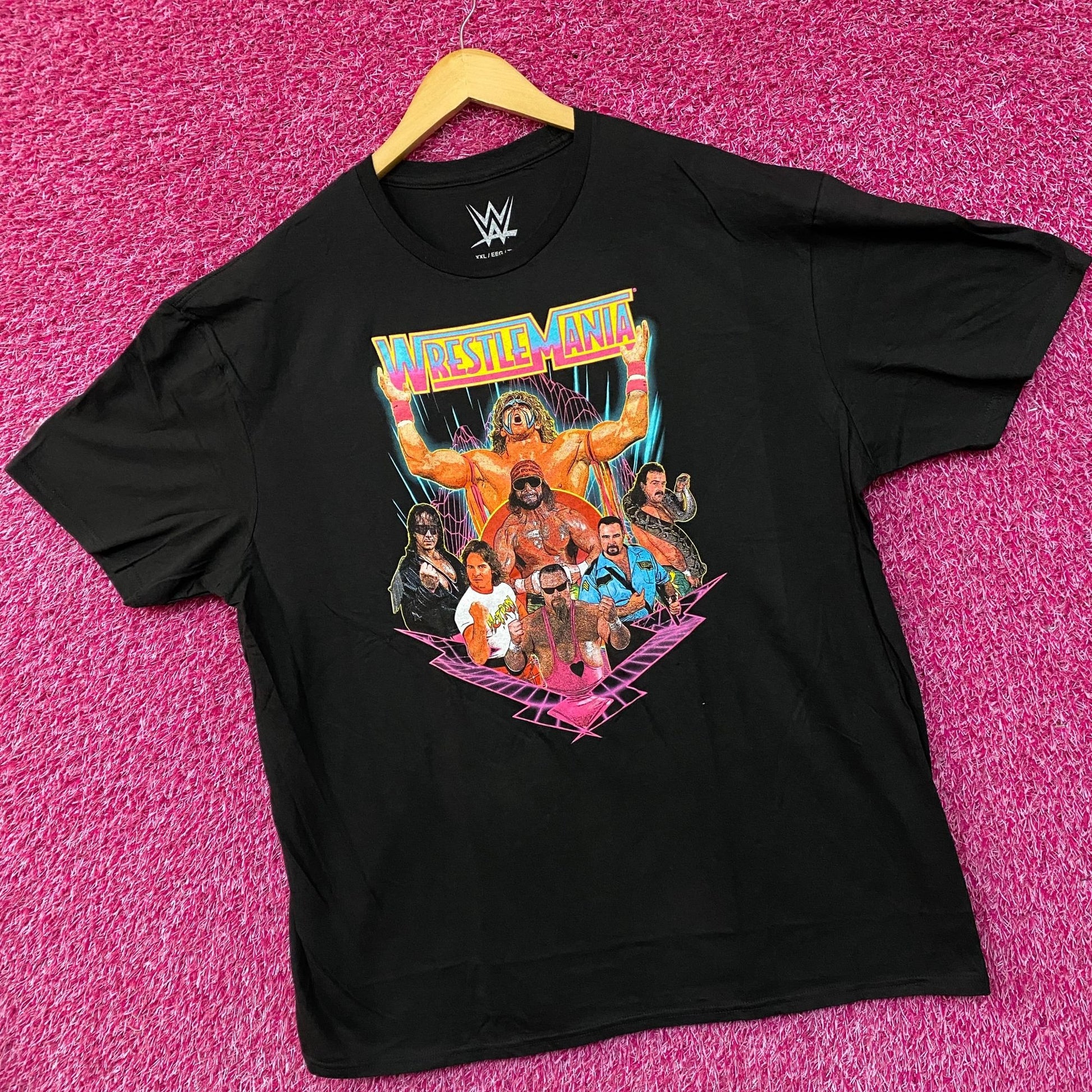 WWE Wrestlemania Wrestler Retro Poster T-Shirt 2XL Generally measures 25 inches pit to pit and 32 inches long. Amazing graphic design shirt, perfect for WWE fans. New never worn overstock in great condition.